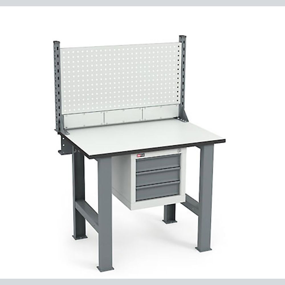 Верстак оборудован антиcтатической столешницей ДСП Thermopal 24 мм, производство Германия (ESD). Максимальная нагрузка на столешницу 300 кг.