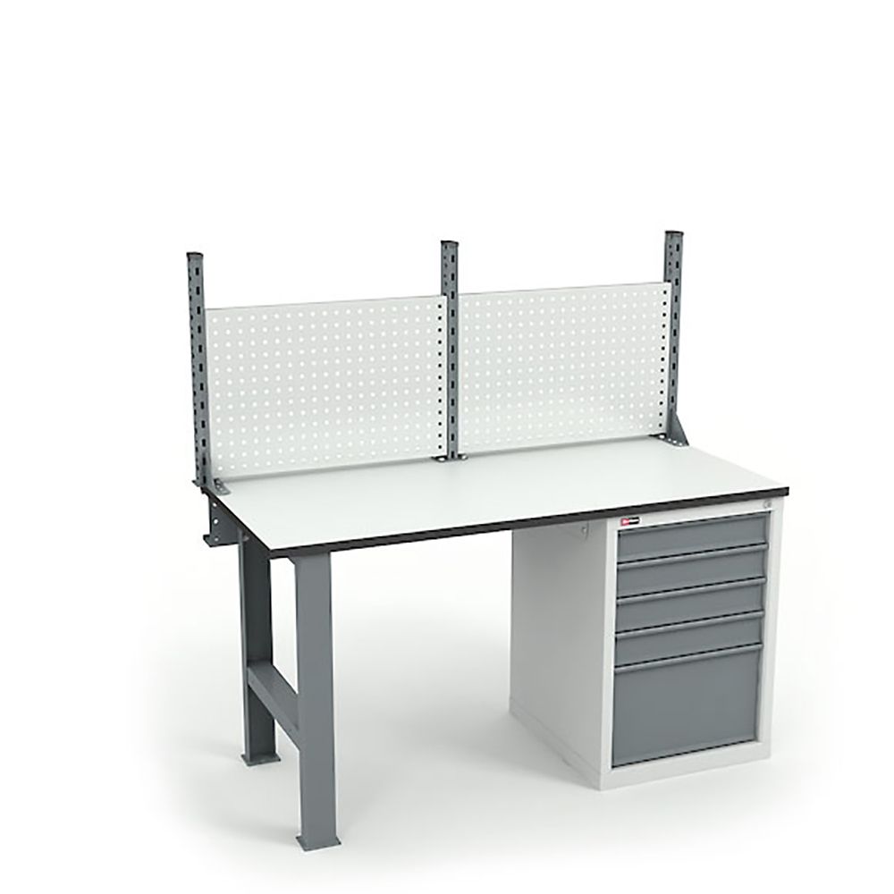 Верстак оборудован антиcтатической столешницей ДСП Thermopal 24 мм, производство Германия (ESD). Максимальная нагрузка на столешницу — 300 кг.