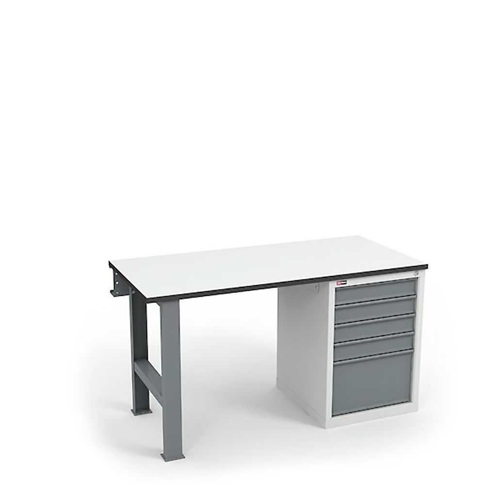Верстак оборудован антиcтатической столешницей ДСП Thermopal 24 мм, производство Германия (ESD). Максимальная нагрузка на столешницу — 300 кг.