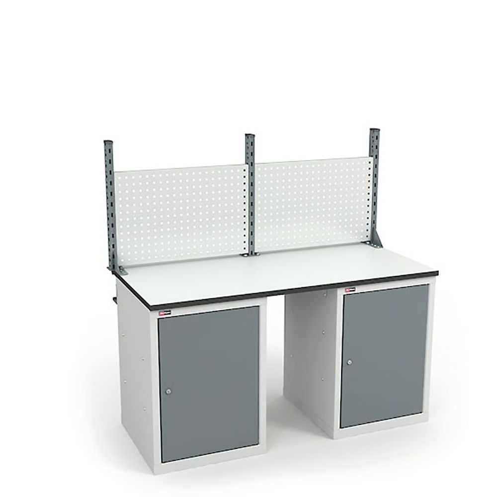 Верстак оборудован антиcтатической столешницей ДСП Thermopal 24 мм, производство Германия (ESD). Максимальная нагрузка на столешницу — 300 кг.